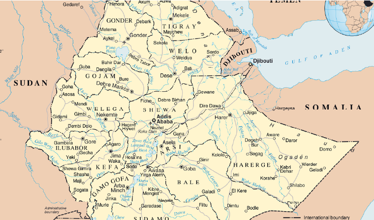 Afrika’nın doğusunda yer alan ve “Afrika Boynuzu” olarak anılan stratejik bölgenin içine dahil edebileceğimiz Etiyopya’nın sınır komşuları batıda Sudan, doğuda Cibuti ve Somali, kuzeyde Eritre, güneyde ise Kenya’dır. Ülkenin bugünkü kuzey komşularından biri olan Eritre 1993 yılında yapılan halk oylaması ile bağımsızlığına kavuşmuş ve ülke Kızıldeniz’e olan kıyı şeridini kaybetmiştir. 1.2 milyon kilometre kareyle neredeyse Türkiye’nin iki katına yakın bir yüz ölçüme sahip olan ülke Nil deltasında yer almakta ve Nil nehri ülkede yaklaşık sekiz yüz kilometrelik bir hat çizmektedir. On bir yönetim bölgesinin oluşturduğu federal bir devlet olan Etiyopya yaklaşık 90 milyonluk nüfusuyla Afrika’nın en geniş popülasyona sahip ülkelerinden bir tanesidir.